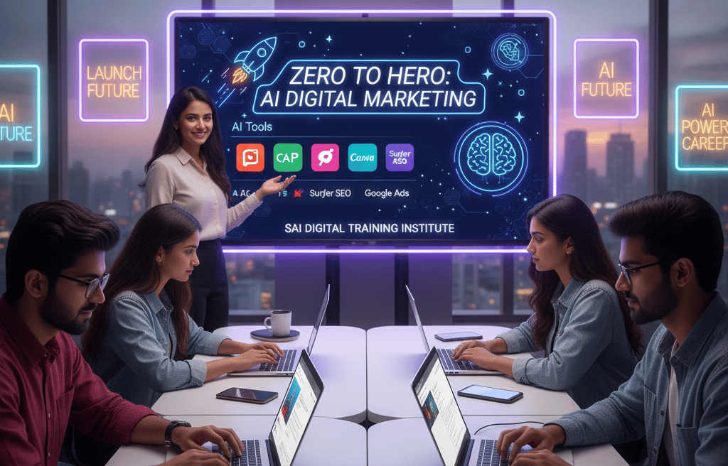 No experience? No problem. AI is helping students and freshers learn digital marketing faster, smarter, and more affordably. Discover how Sai Digital Training Institute empowers beginners to build real skills, portfolios, and career opportunities—starting from zero.